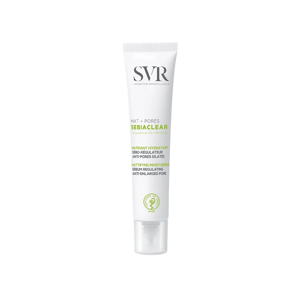 El **SVR Sebiaclear Mat Pores** es el producto perfecto para quienes buscan un matificante hidratante diseñado específicamente para pieles mixtas a grasas. Su fórmula única absorbe el exceso de sebo, afina la textura de la piel y ofrece un acabado mate sin obstruir los poros. Con ingredientes potentes como la niacinamida y el ácido salicílico, es ideal para combatir imperfecciones y mantener la piel hidratada.